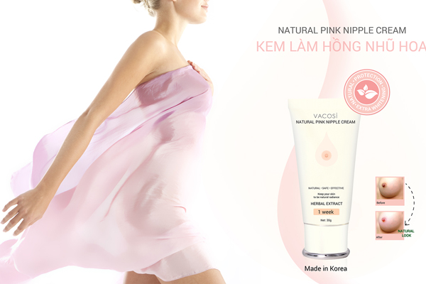 Kem hồng nhũ hoa Vacosi được chiết xuất từ thảo dược thiên nhiên có tác dụng làm sáng các đốm thâm đen, loại bỏ lớp da chết, cải thiện lớp da mới khỏe đẹp. Không cần phải e ngại việc đó giờ đây chỉ cần đơn giản tại nhà với sản phẩm làm hồng nhũ hoa Vacosi Natural Pink Nipple Cream chúng ta sẽ thực hiên được ngay ước muốn của mình mà không phải tốn thời gian. Hiệu quả thấy rõ sau 01 tuần sử dụng đem đến cho con người vòng 1 săn chắc, trắng sáng, rất là nhũ hoa sẽ hồng hào, lớp sạm đen dần bị đẩy lùi nếu chúng ta kiên trì sử dụng.